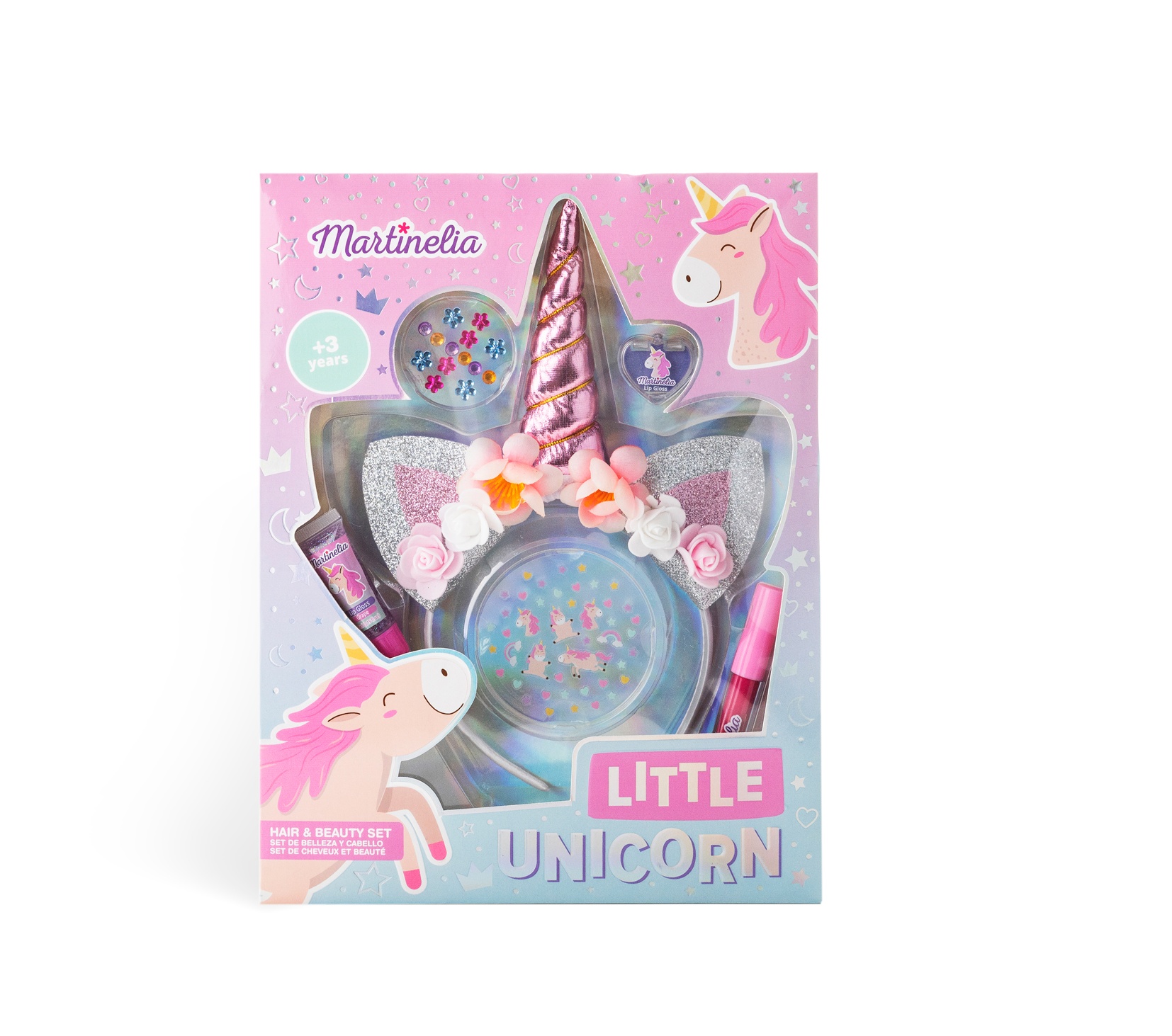 Χαρίστε ένα υπέροχο δώρο στις μικρές σας πριγκίπισσες, το Martinelia LITTLE UNICORN Hair & beauty set by FOLIA COSMETICS – ένα παιδικό σετ που περιλαμβάνει 1 lip gloss, 1 lip balm σε υγρή μορφή, 1 στέκα μαλλιών, στίκερς και στρασάκια για το πρόσωπο .